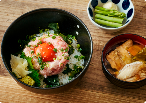 - まぐろねぎとろユッケ丼
